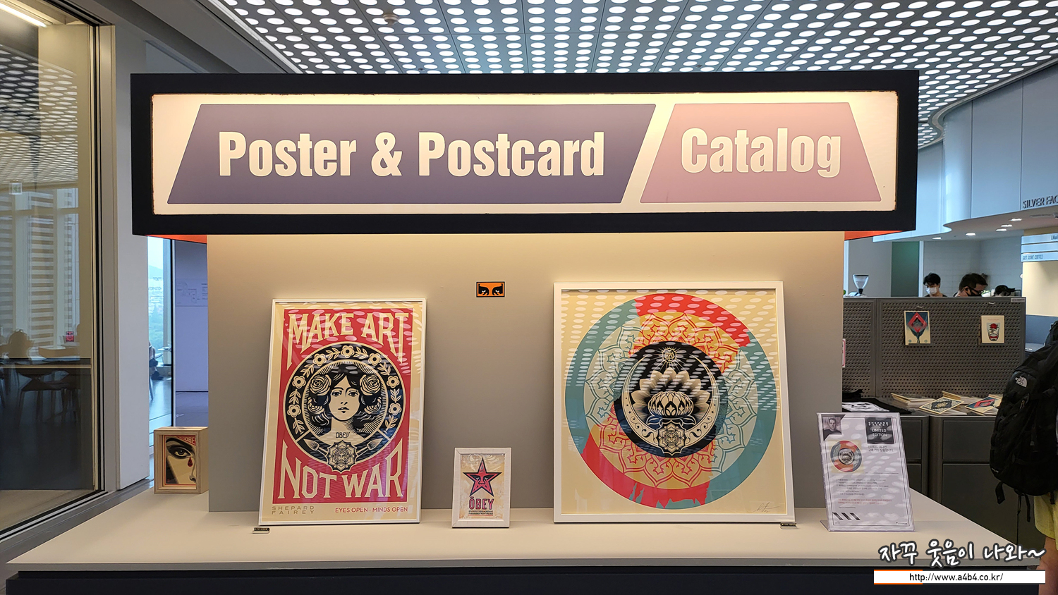 아트샵에는 포스터와 엽서, 스티커 등이 준비되어 있습니다. 이외에 가방과 스카프가 있는데요. 종류가 많지는 않습니다.