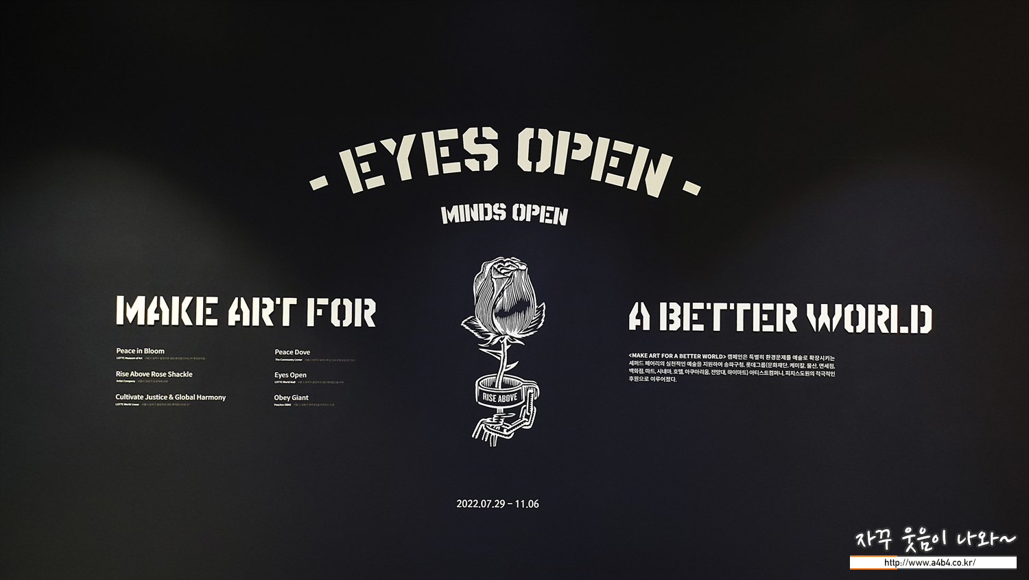 셰퍼드 페어리는 이 작품을 통해 눈을 크게 뜨고 우리가 살아가는 환경과 세상을 주의 깊게 살피기를 유도합니다.