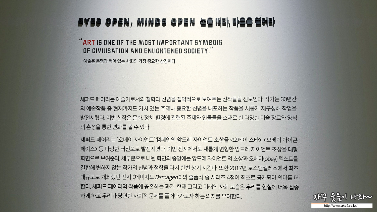 이번 셰퍼드 페어리 전시회는 일반 도슨트는 운영되지 않습니다. (뭐 프라이빗 도슨트... 있는 것 같기도...)