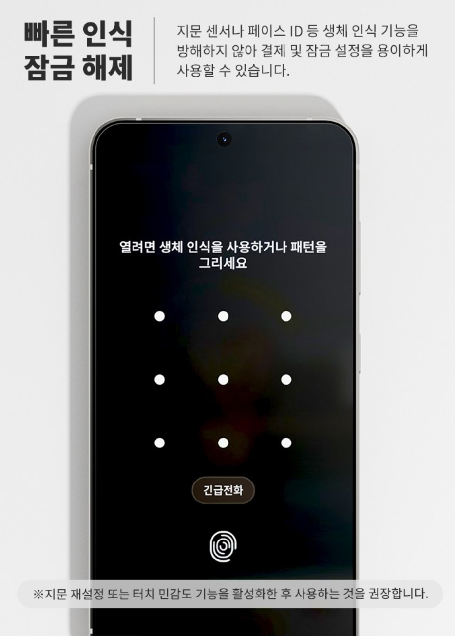 보통 브랜드별 사생활 보호필름 구조가 다소 상이한 부분이 있어 지문인식을 새로 등록해야 한다고 했는데요. 이후 다소 번거러운 부분이 있습니다.