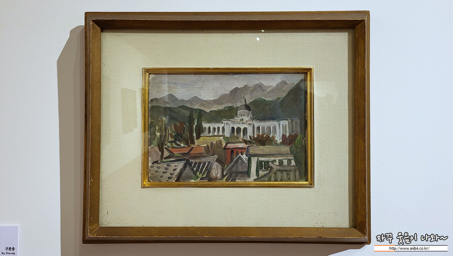 1930년대 한국 모더니즘 미술의 선구자 중 하나인 구본웅이 그린 이 그림은 지금은 볼 수 없는 서울의 풍경을 담고 있습니다. 저 멀리 북악산을 배경으로 하얀 건물이 보입니다. 지금은 사라진 중앙청 건물입니다. 중앙청은 일제강점기 조선총독부 건물로 1926년 경복궁 안에 건설됐습니다. 광복 이후 정부 청사, 국립중앙박물관 등으로 사용되다가 1995년 민족 정기 회복을 위해 철거됐습니다. 이 그림은 서구식 건물과 한옥이 혼재했던 근대 도시 서울의 풍경을 잘 보여줍니다. 화면 앞쪽 한옥은 굵은 선으로 윤곽을 분명하게 그렸고 뒤쪽중앙청과 산은 윤곽 없이 표현해 대조를 이롭니다. 그림을 그린 구본웅은 발레리나 강수진의 외할아버지로도 유명합니다.
