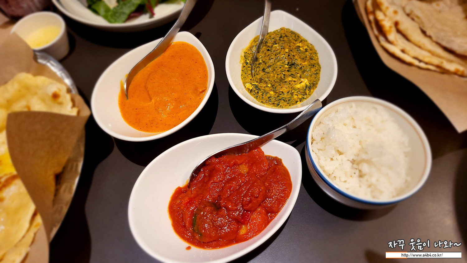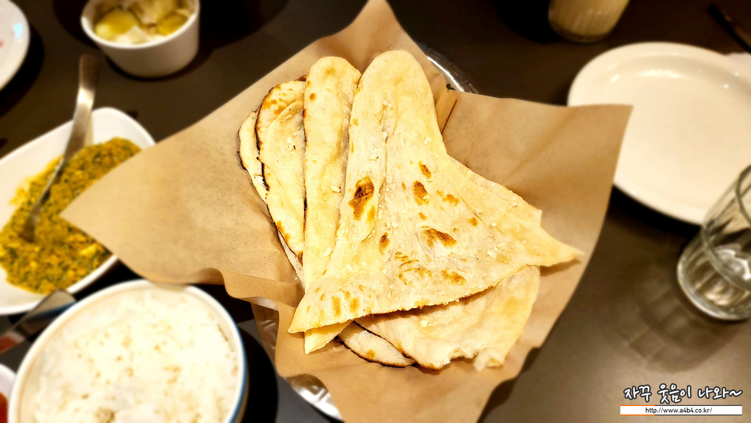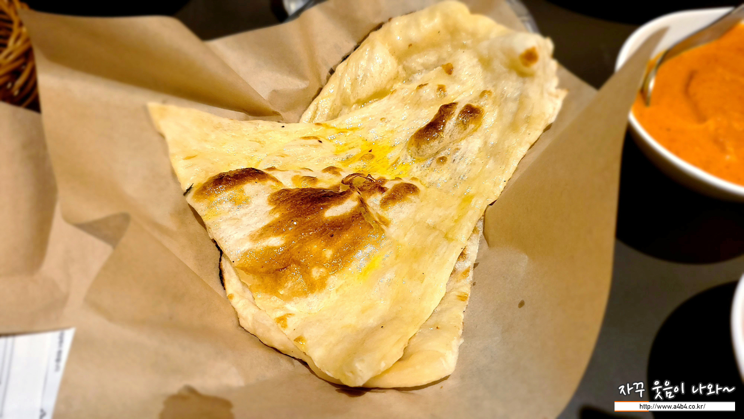 저희는 두 종의 난을 주문했네요. 난 크기가 매우 큽니다. 크기가 후덜덜 하네요. 한국 인도식당에서 먹어본 난 중에서는 가장 큰 사이즈를 보이는 것 같네요. 보통 인도음식점에 오면 난을 추가주문 하는데, 이번에는 남겼네요.