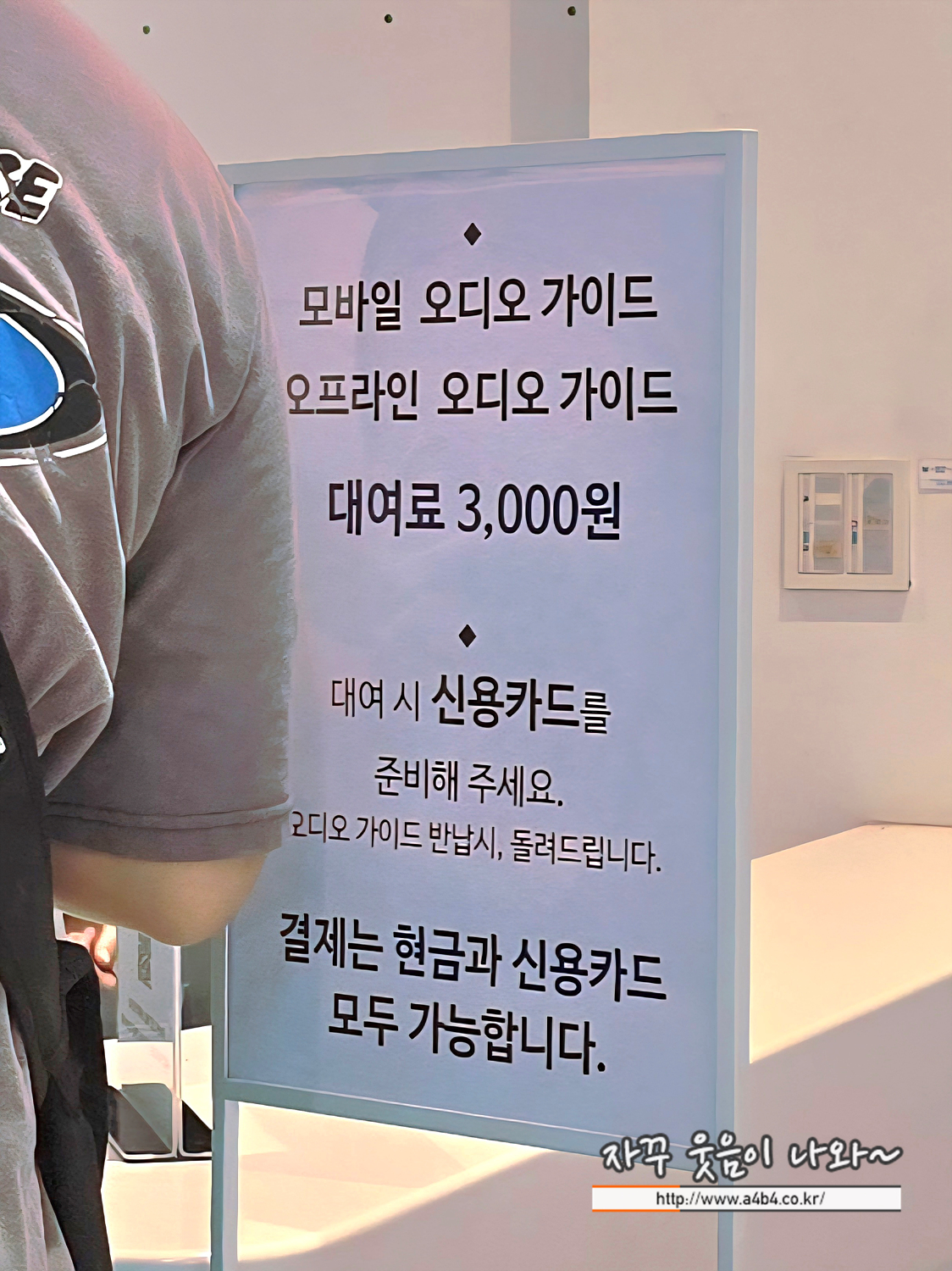 이번 장 미셸 바스키아 전시 오디오가이드는 가이드온에서 지원하는 것처럼 나왔지만 앱으로 접속하면 지원되는 내용이 없습니다. QR이용해서 모바일웹 접속해서 결제하고 이용하는데, 이어듣기도 되지 않고 상당히 불편하고 불친절합니다. 다른 브라우저 구동하면 중지되고... 그냥 현장에서 기기 대여를 추천 합니다.