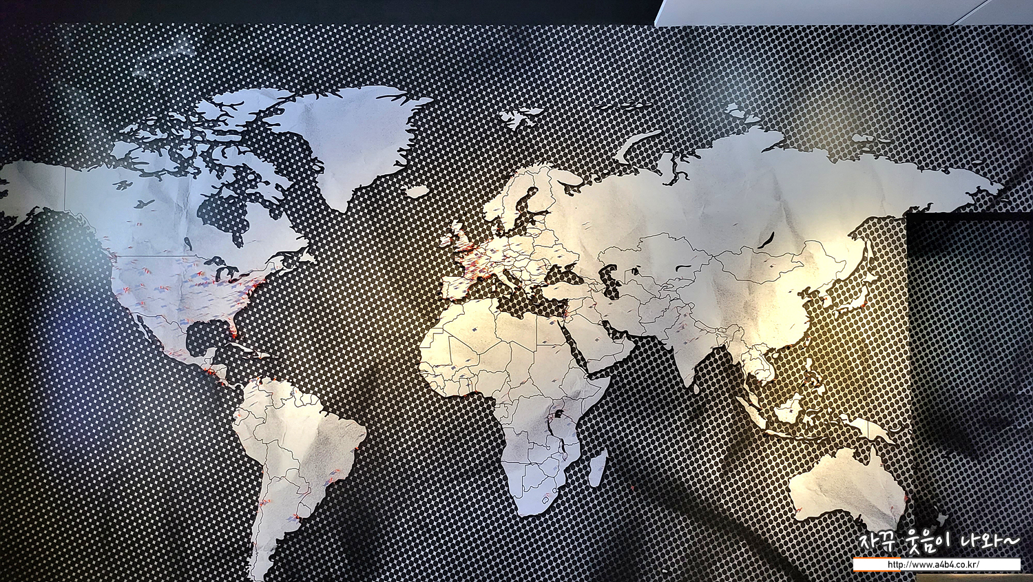전시장 한켠에는 세계지도와 함께 지도위에 핀이 박혀 있습니다. 이곳들은 바로 인사이드 아웃 프로젝트에 참여한 국가