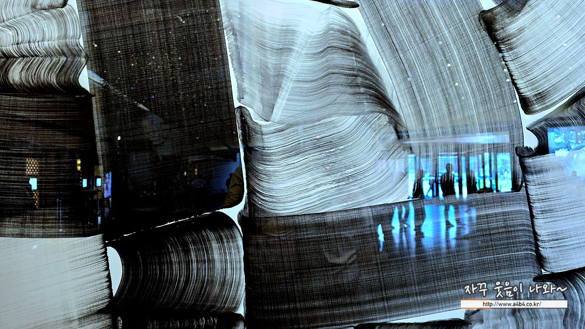 사유의 방으로 들어가는 길 벽면에는 멀티미디어 아트가 상영되고 있는데요. 저는 잘 이애하기 힘든 내용입니다.