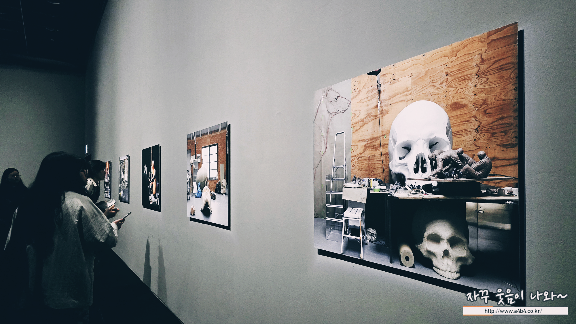 이번 국립현대미술관 론 뮤익 개인전이 열리고 있는 05관 마지막에 전시된 작품이자 이번전시회에서 메인이 되는 작품입니다. 포스나 티켓등에 사용되는... 100개의 해골로 만들었다고 하는데요. 이번 론뮤인 전시 포토존이 구성되어 있습니다.