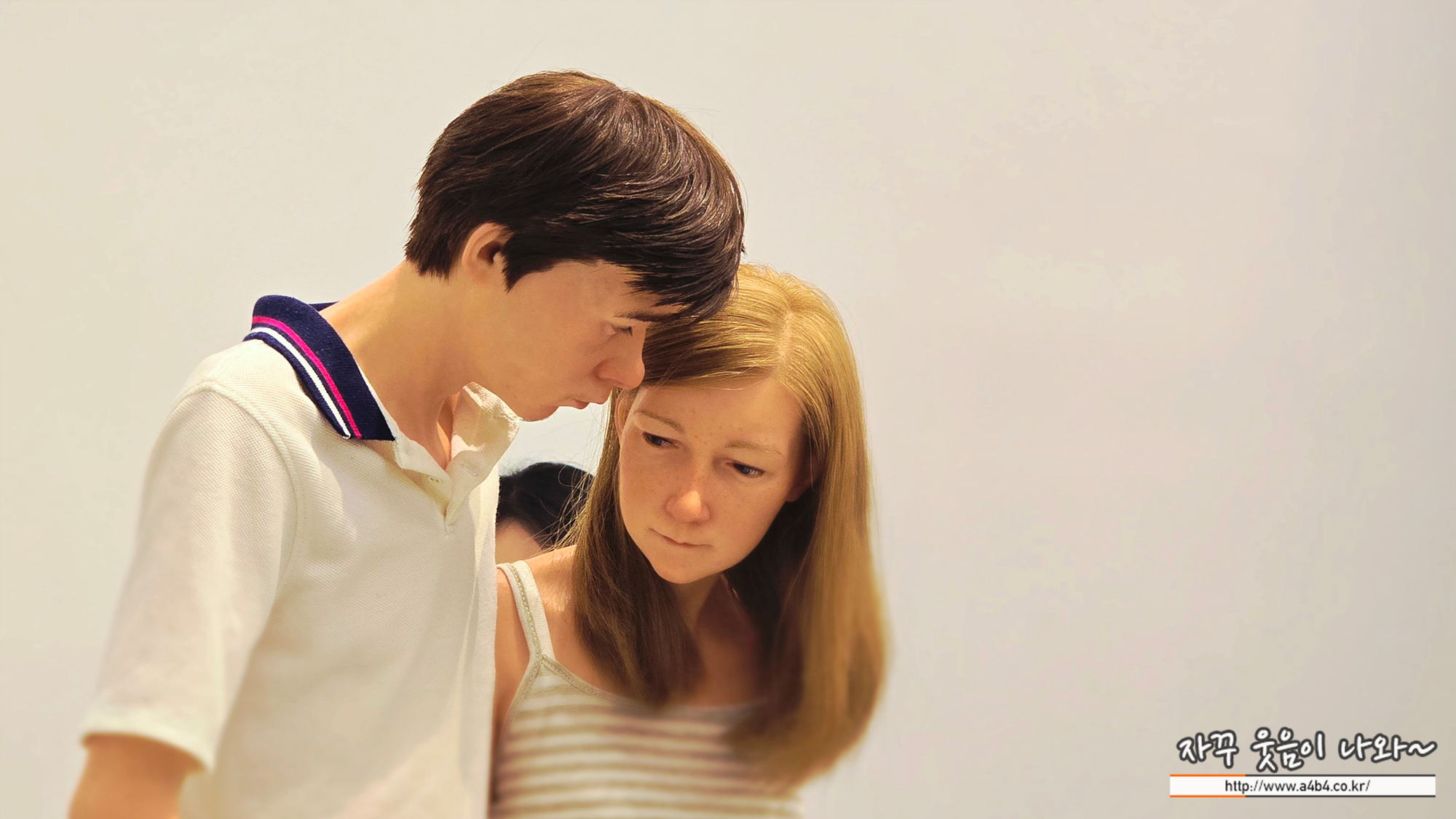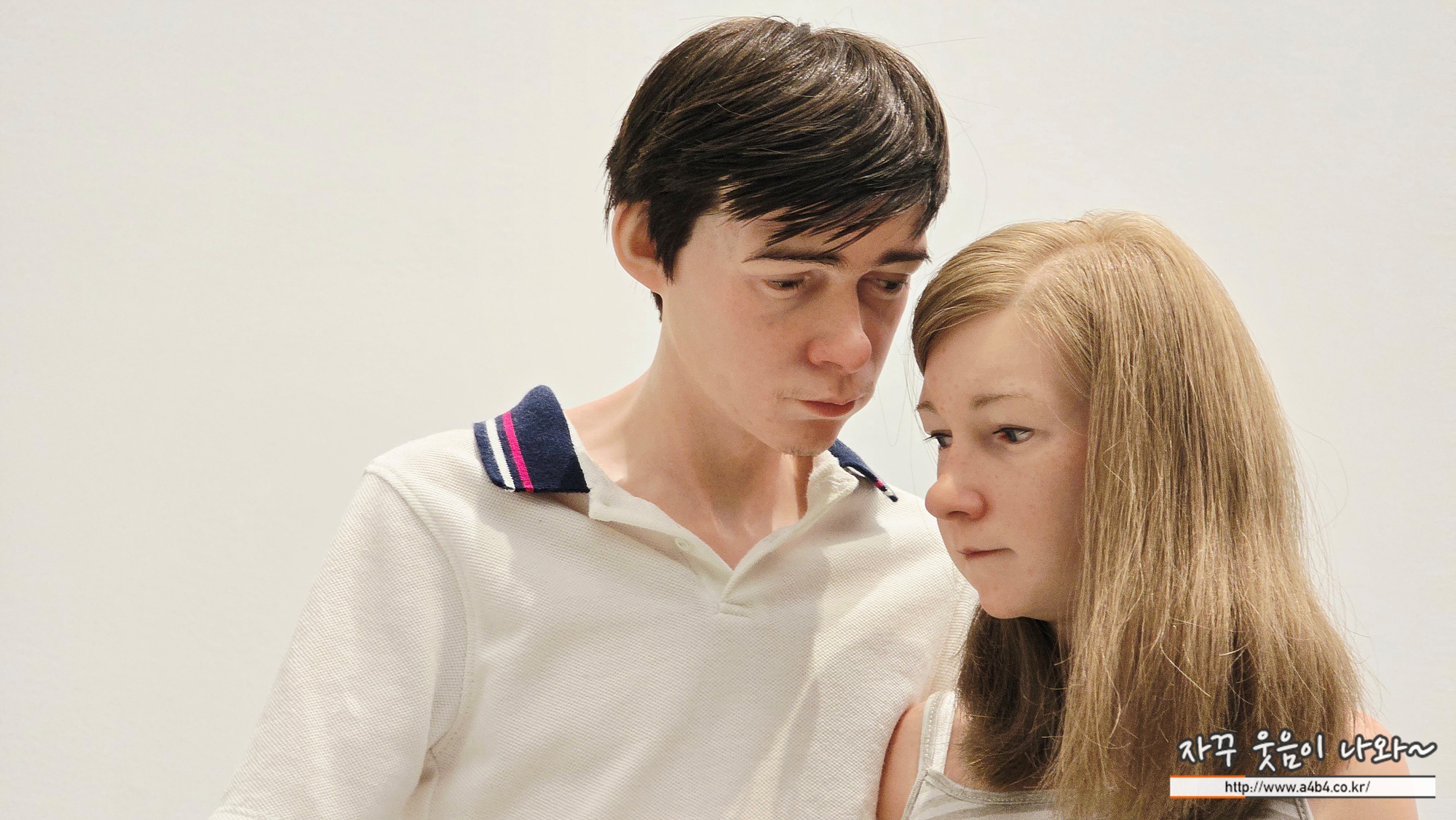 론 뮤익의 작업을 더욱 흥미롭게 감상하는 방법이 있습니다.정면이 아닌 다른 각도와 시선에서 작품과 눈을 맞추고 감춰진 감정을 읽어내는 것입니다. 또 다른 감상 방법도 있습니다. 작품들이 바라보는 곳을 상상해 보는 것입니다.