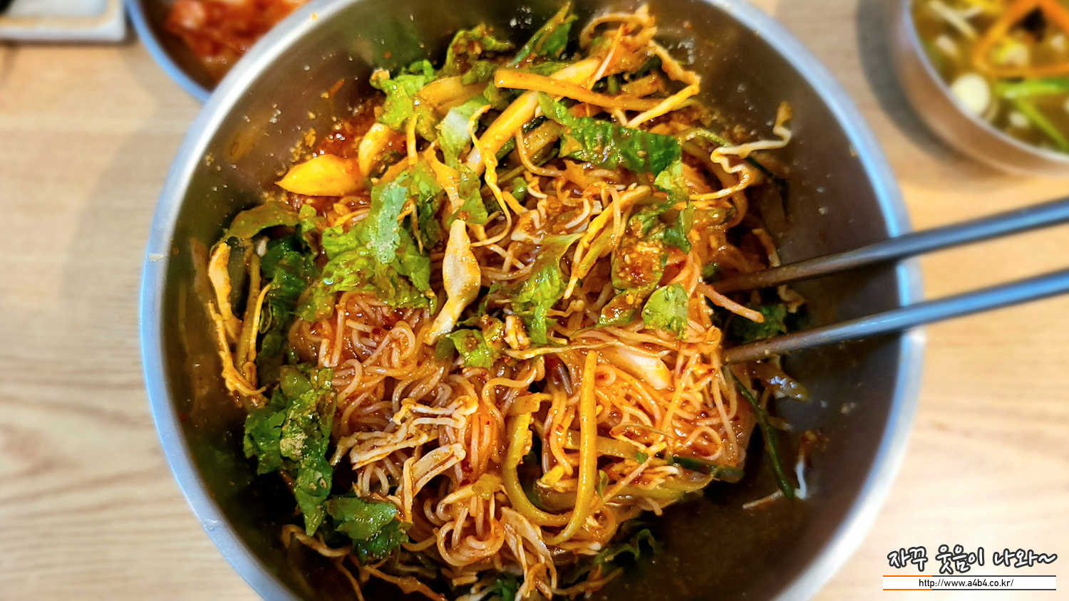 맛은 쏘쏘하네요. 비빔국수와 반 반씩 먹으니 이 또한 각각 다른 맛을 보여줍니다.