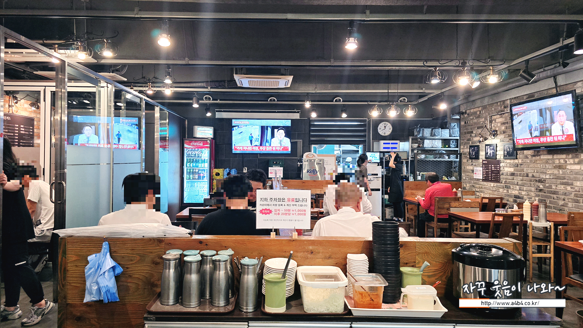 부족한 반찬은 식당 중앙에 있는 이곳에서 리필하시면 됩니다. 고기 반찬은 더 있군요.