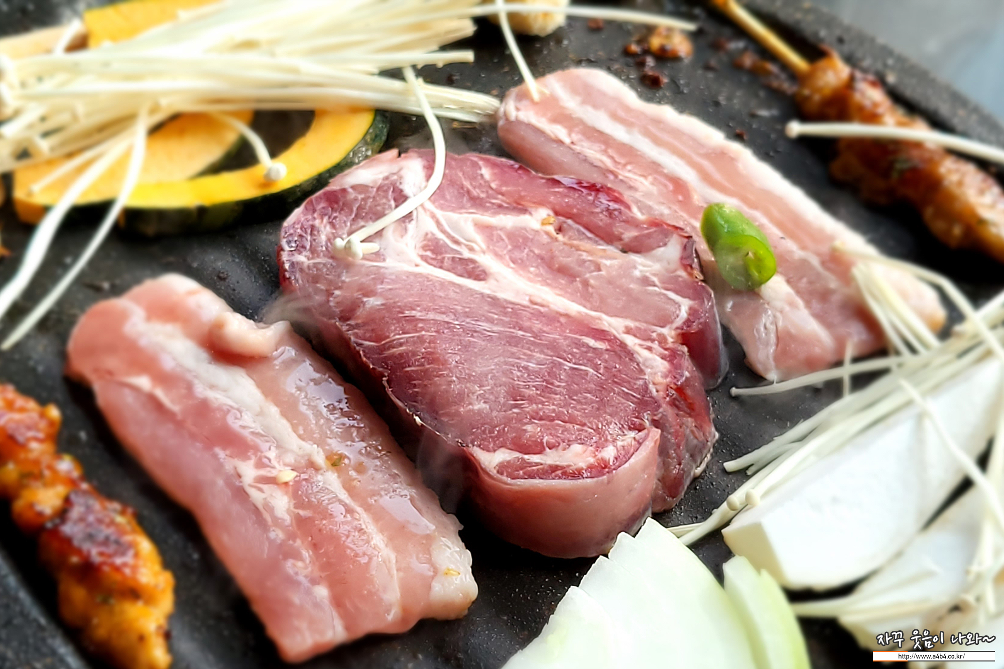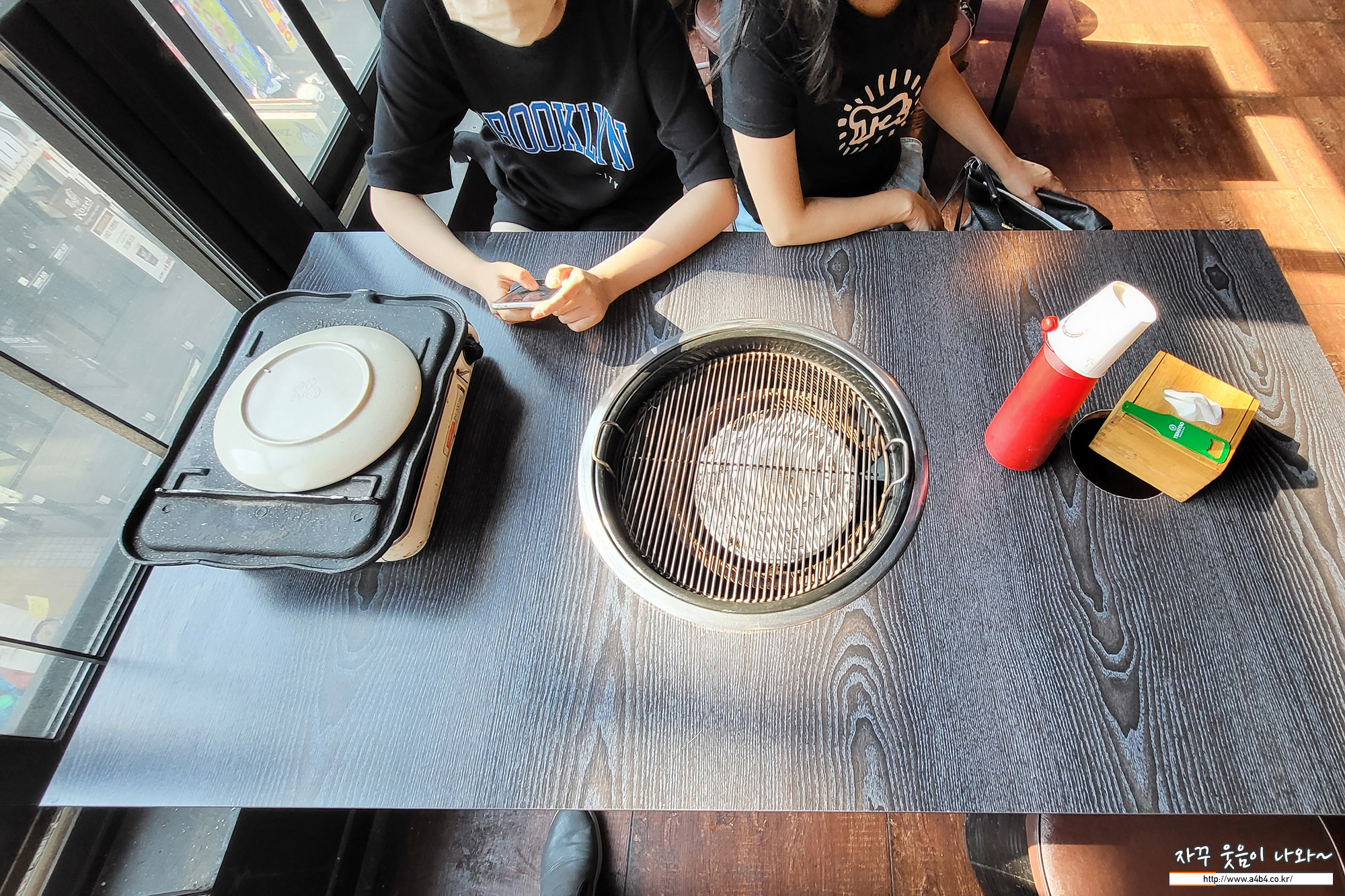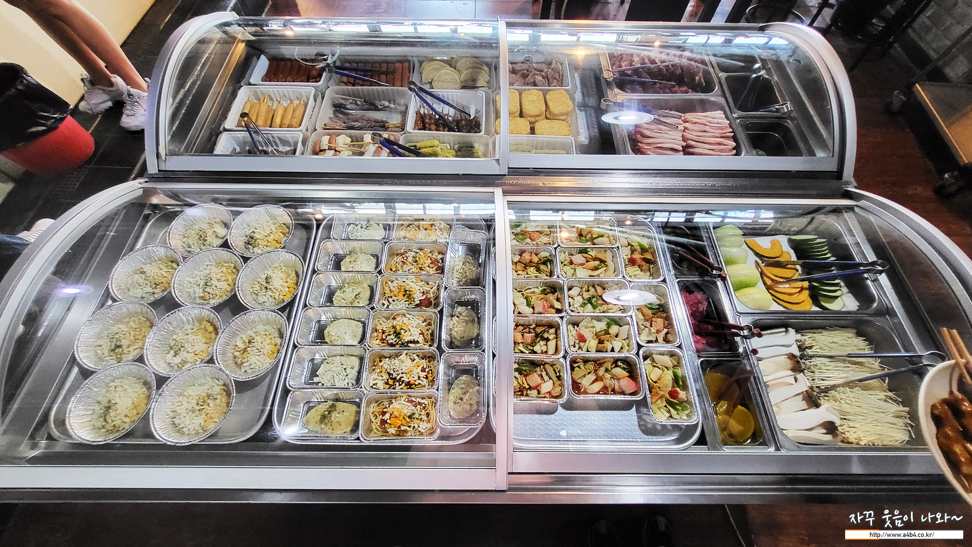 기본 반찬은 묵은지와 콘 옥수수, 미역초무침, 번데기, 호박이 나오고요. 마늘과 쌈장 등이 나오는데, 상추나 깻잎은 나오지 않습니다. 반찬은 리필 잘 됩니다.