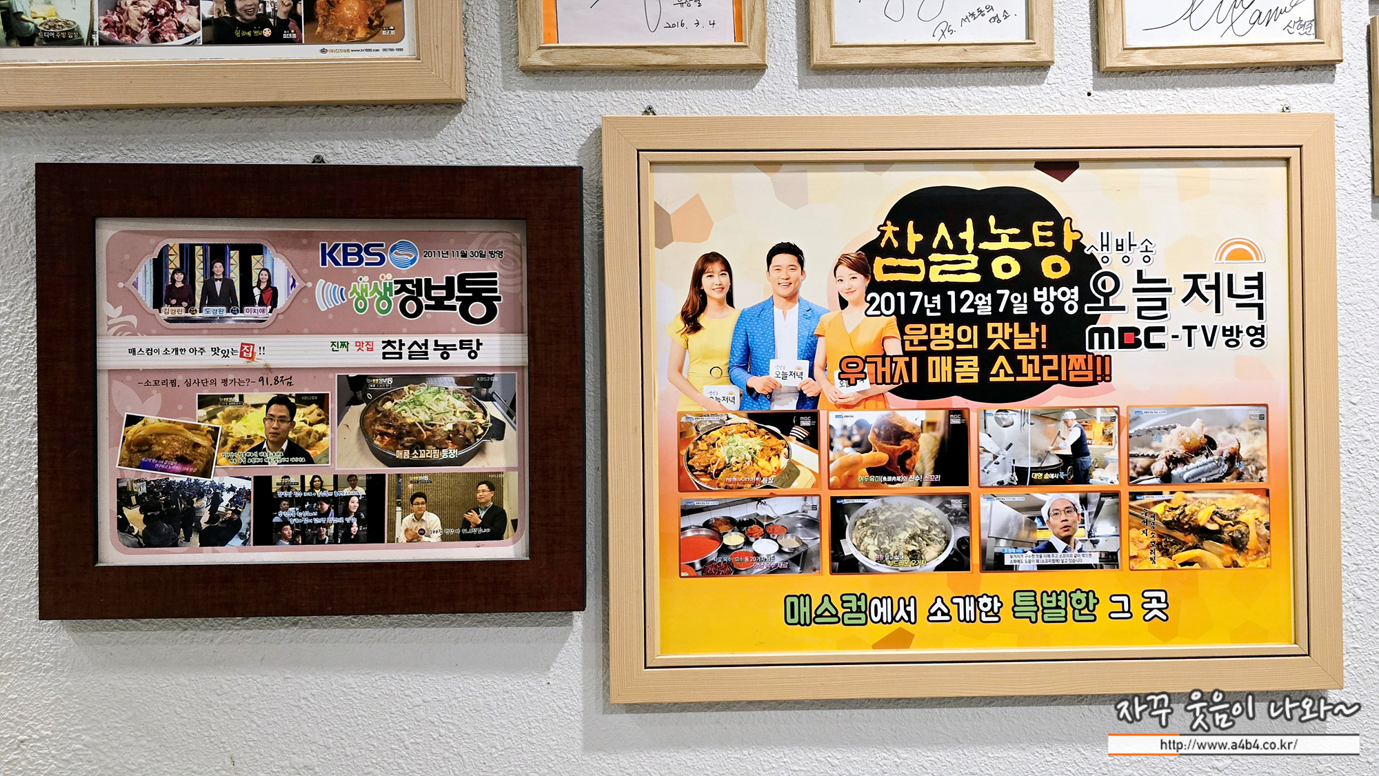 참설농탕은 송파본점과 서초점 두 곳에서 영업하고 있는데요. 1층에 주차하고 2층 매장으로 올라가는 계단 (엘리베이터도 있어요) 벽면에 빼곡한 유명인들의 사인과 KBS 생생정보통, MBC 생방송 오늘저녁, VJ 특공대 등에 소개된 맛집 인증이 붙어 있습니다.