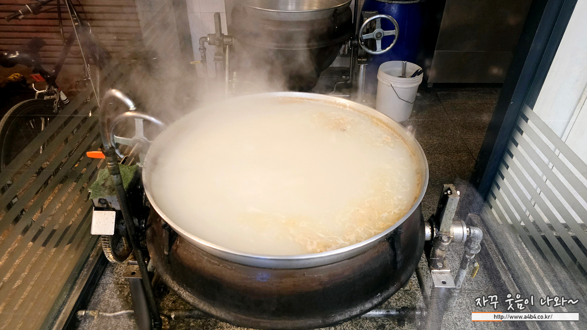 매장 입구에는 커다란 가마솥에서 팔팔 곰탕을 끓이고 있습니다. 진한 사공육수 냄새와 함께 확 식욕이 당기네요.