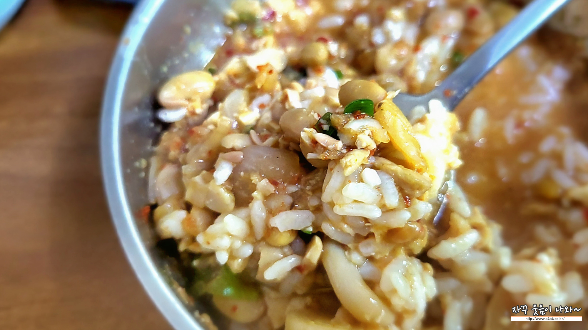 청국장 콩도 살아있고, 두부와 버섯도 푸짐하게 들어 있습니다.