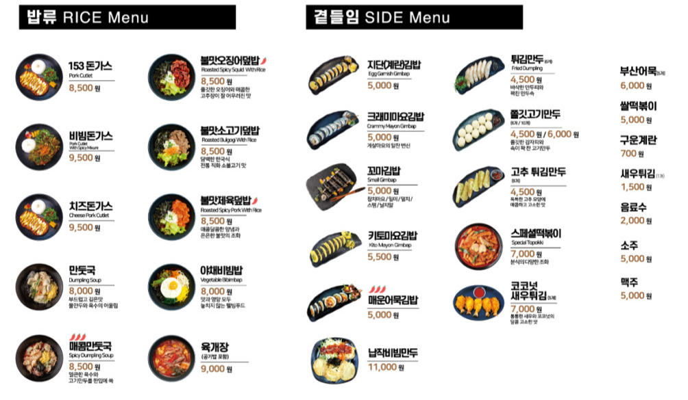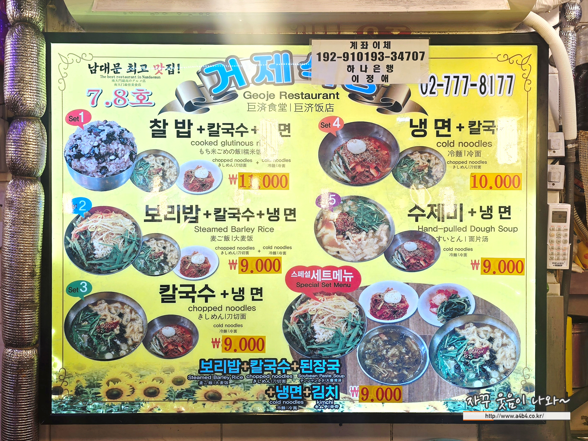 | 남대문 칼국수골목 메뉴 (거제식당 기준)