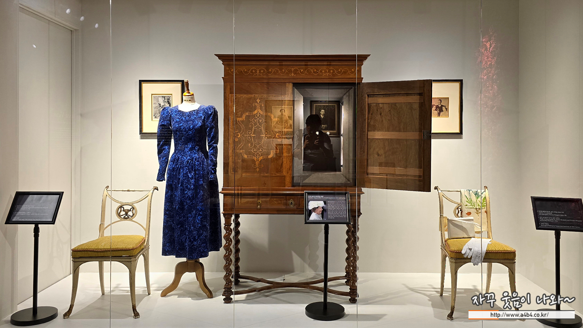 이번 특별전은 엘리자베스 2세가 현 국왕 찰스 3세를 잉태했던 신 혼 시절 착용했던 무도회 드레스로 시작하여, 다이애나 비가 결혼 식에서 착용했던 웨딩 베일과 1992년 방한 당시 입었던 버건디 로 즈 드레스로 마무리된다. 당시 노태우 대통령의 초청으로 성사 된 한국 방문은 찰스 왕세자 부부가 함께한 마지막 공식 일정이기 도 하다. 2023년 12월에는, 다이애나 비가 밴쿠버 방문(1986 년) 당시 착용했던 이브닝 드레스가 무려 15억 원이라는 경매 최고가를 기록하며, 다이애나 비에 대한 대중들의 그리움과 여전 한 사랑을 증명했다. 또한 사랑을 위해 왕위를 버린 윈저 공작 과, 영화 '킹스 스피치'의 실제 주인공인 조지 6세의 소장품도 만 날 수 있다.