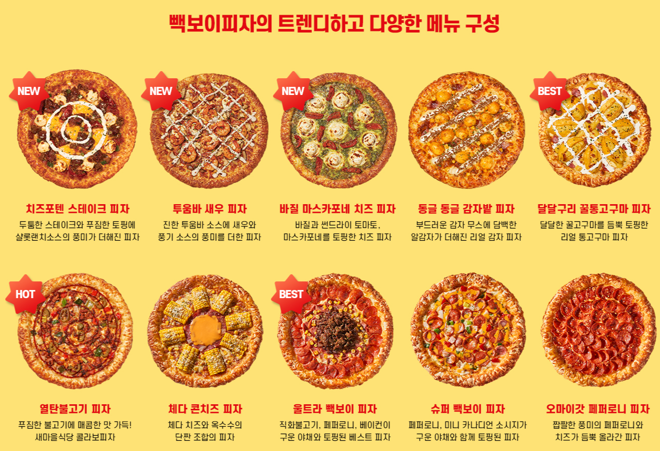 | 빽보이 피자 메뉴