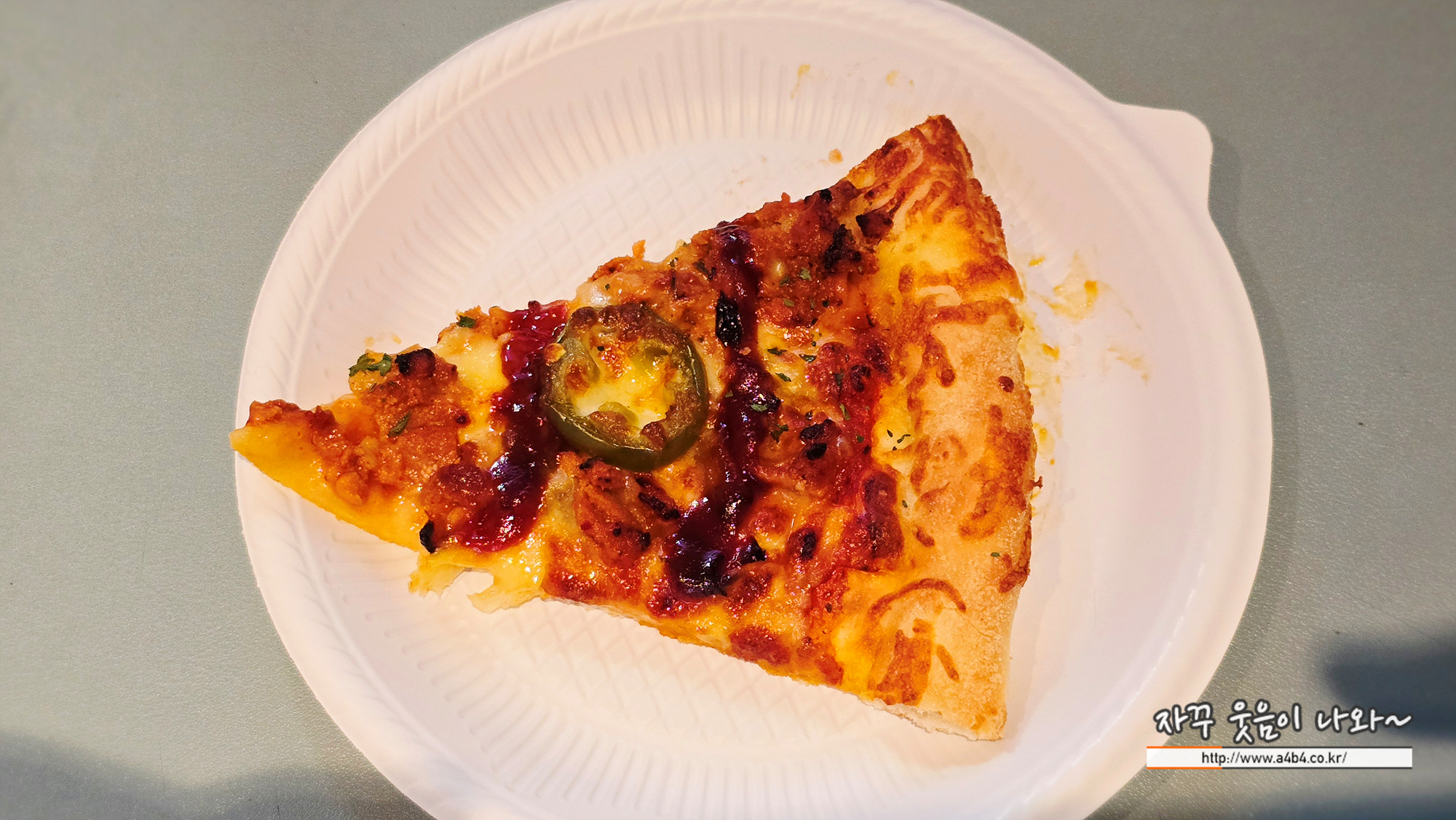 피자 설명에는 새마을시장 콜라보피자에 매콤한 불고기 맛이라고 소개 되었지만...