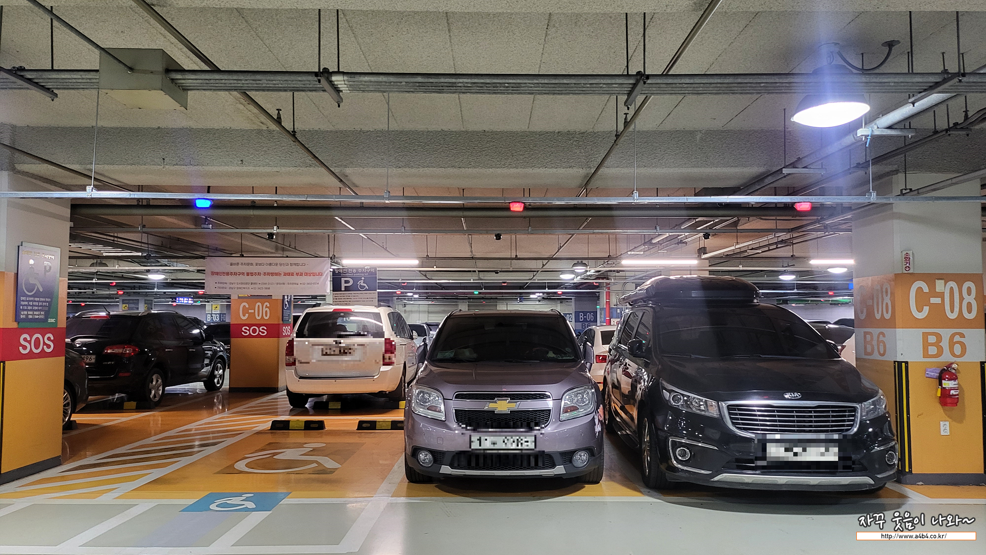 참고로 병원 주차장이다 보니 사이사이에 이런 SOS 비상벨도 설치되어 있습니다. 참고...