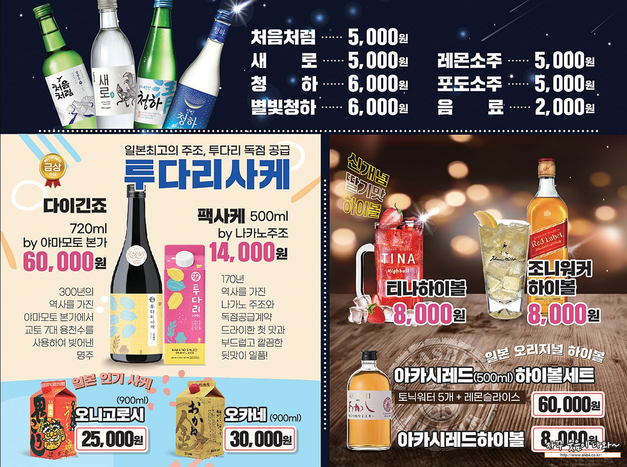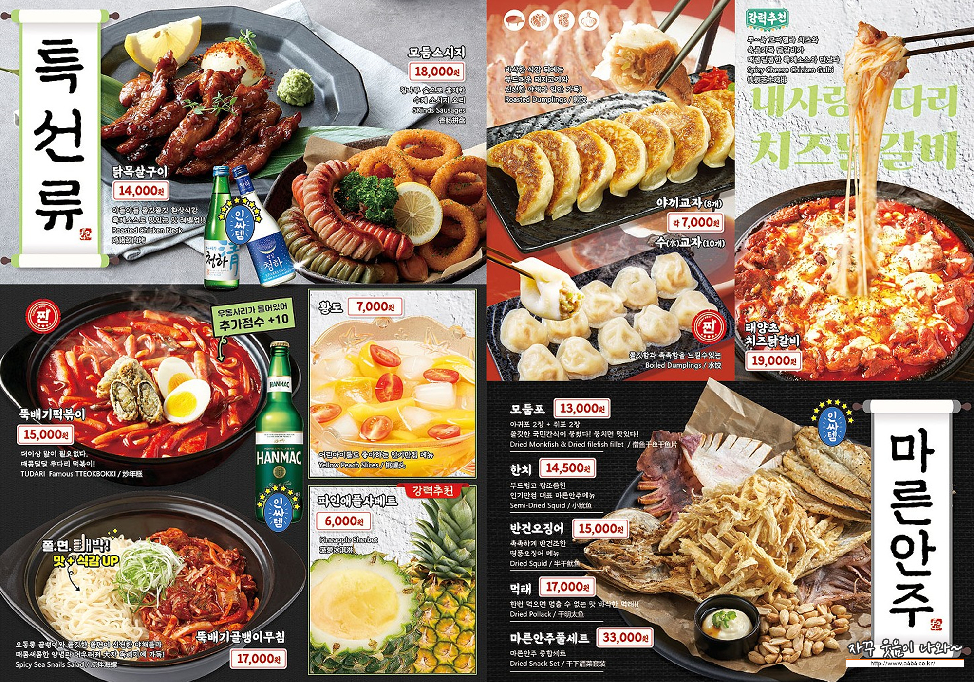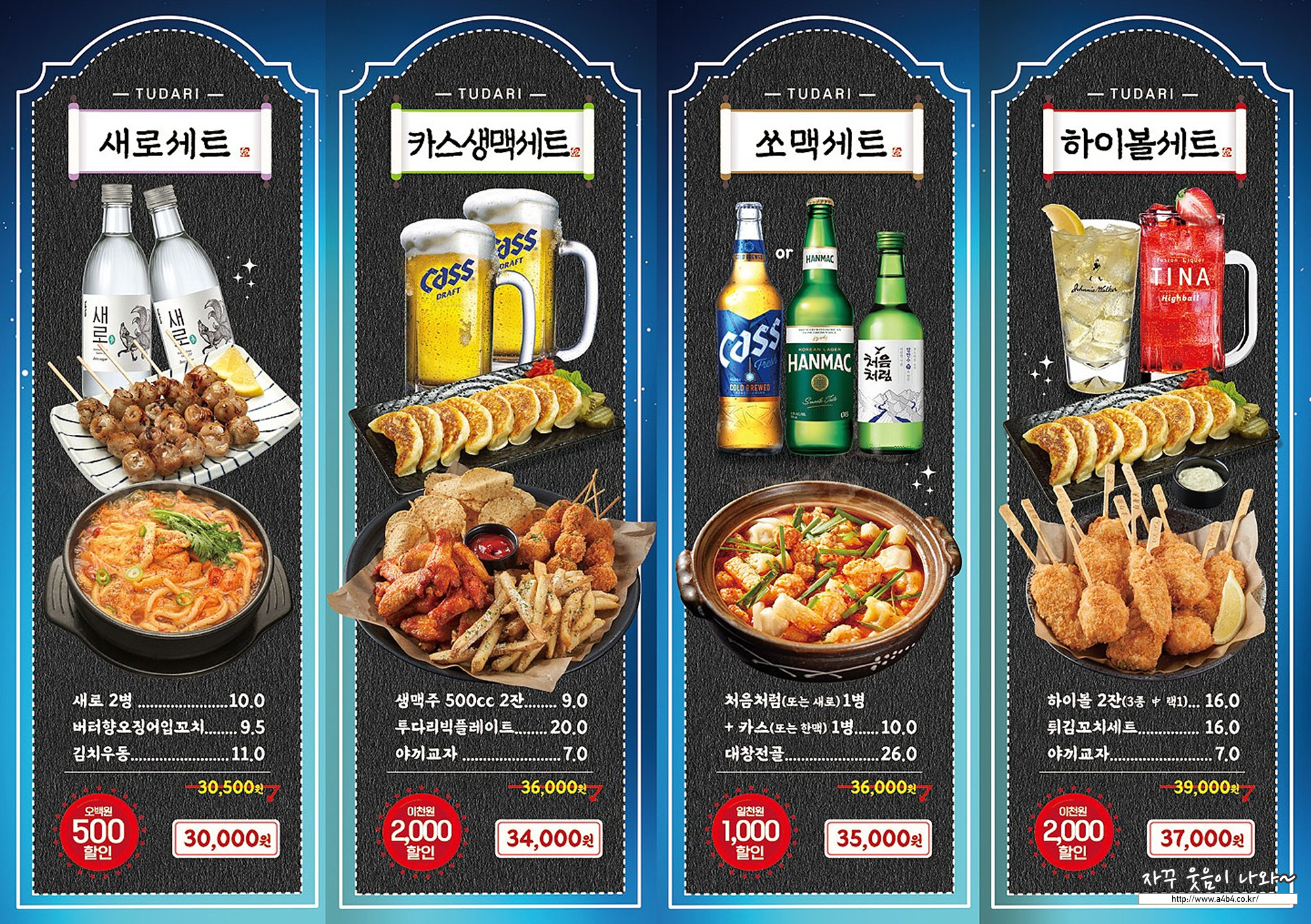 이렇게 주류와 안주 세트메뉴도 즌비되어 있습니만 할인 폭은 크지 않네요. 그냥 편하게 원하는 메뉴로 주문하는 것이 좋을 것 같네요.