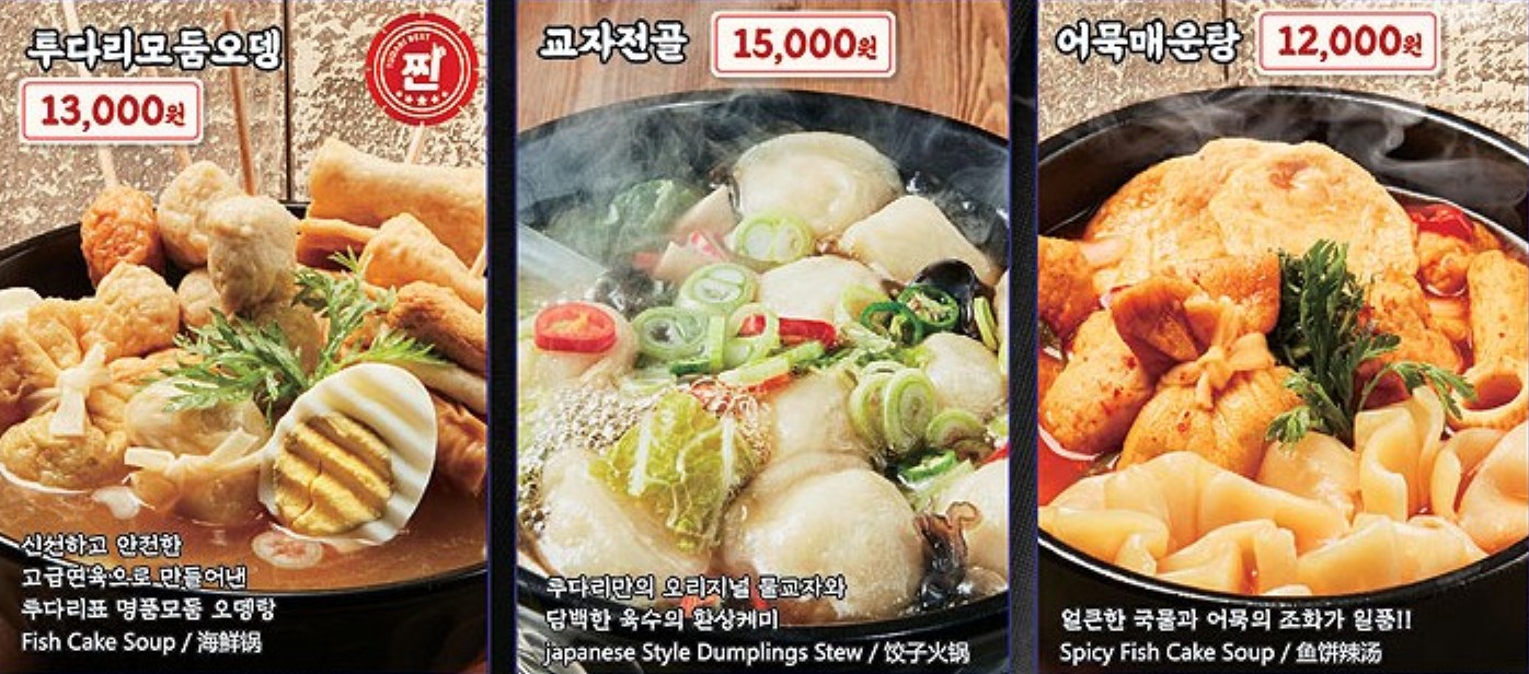 투다리 메뉴판에서 추천하는 메뉴중 하나입니다. 다양한 꼬치 어묵이 들어 있는데요. 처음에는 다소 심심한 맛을 보여서 주문 실패했다고 생각했네요.