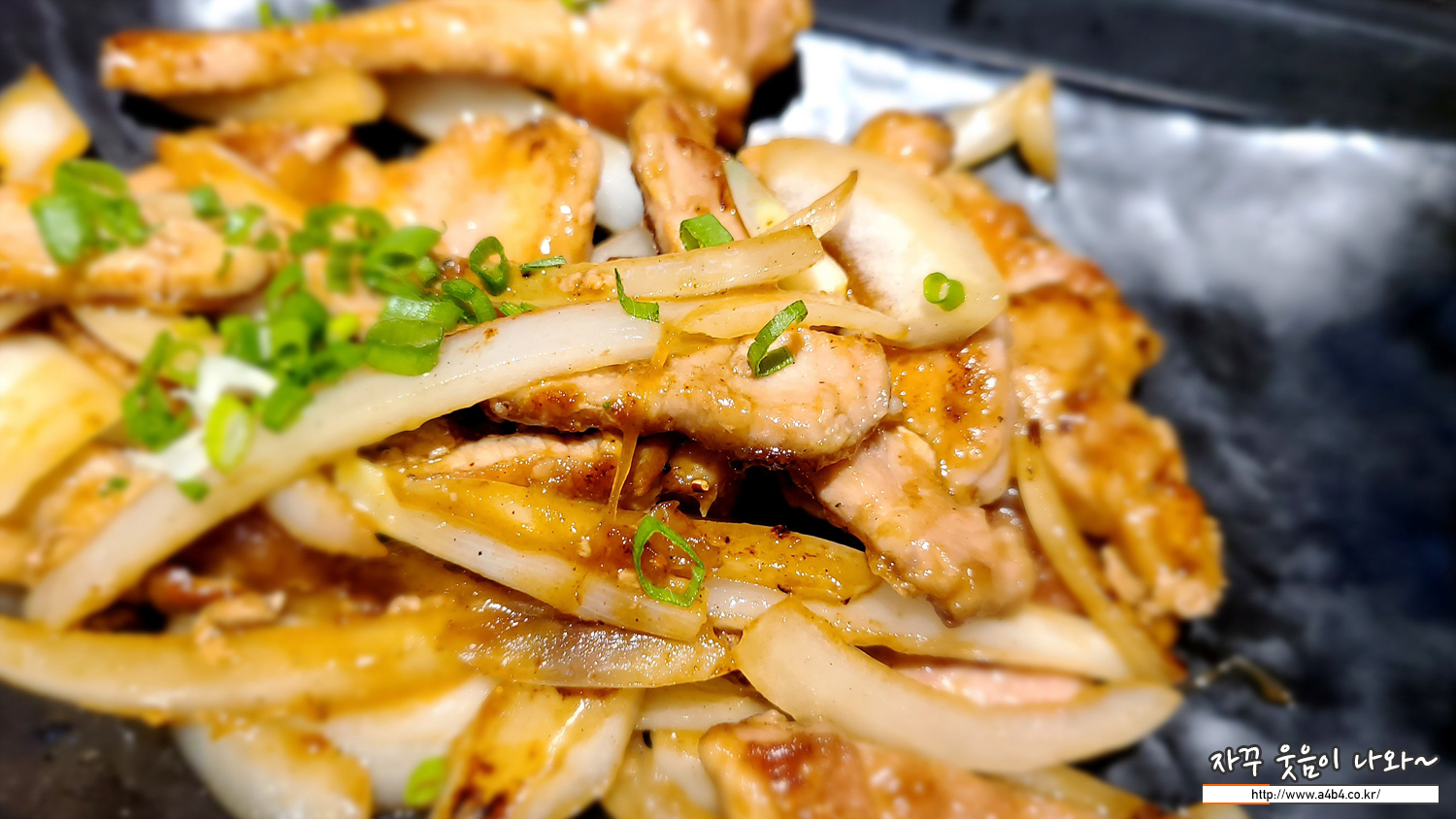 카렌 목살스테이크 정식에 나온 목살, 양념과 양파 목살...