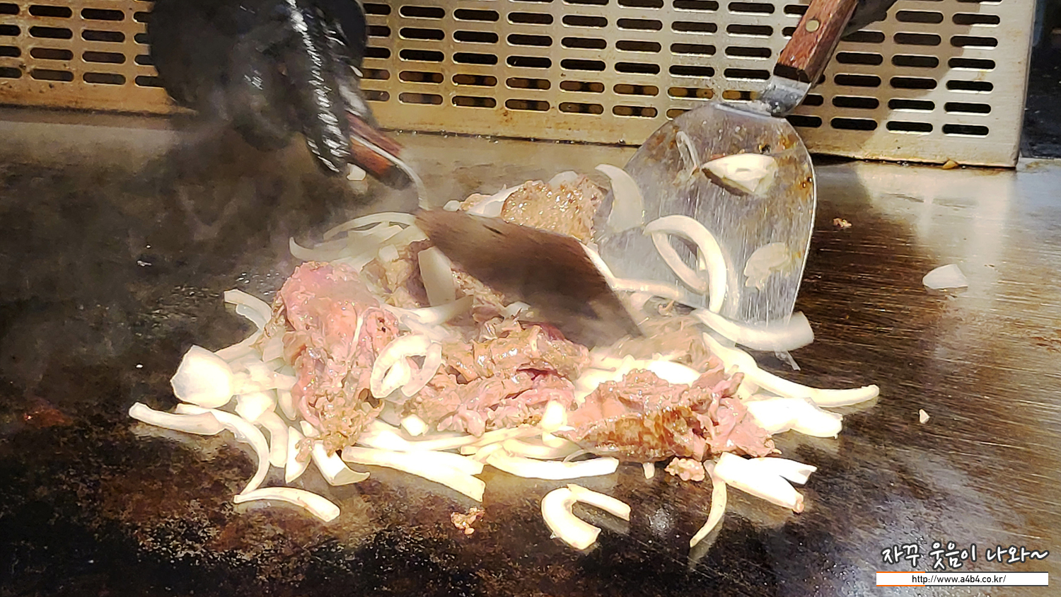 부채살과 소고기 볶음 철판요리 장면도 볼 수 있네요.