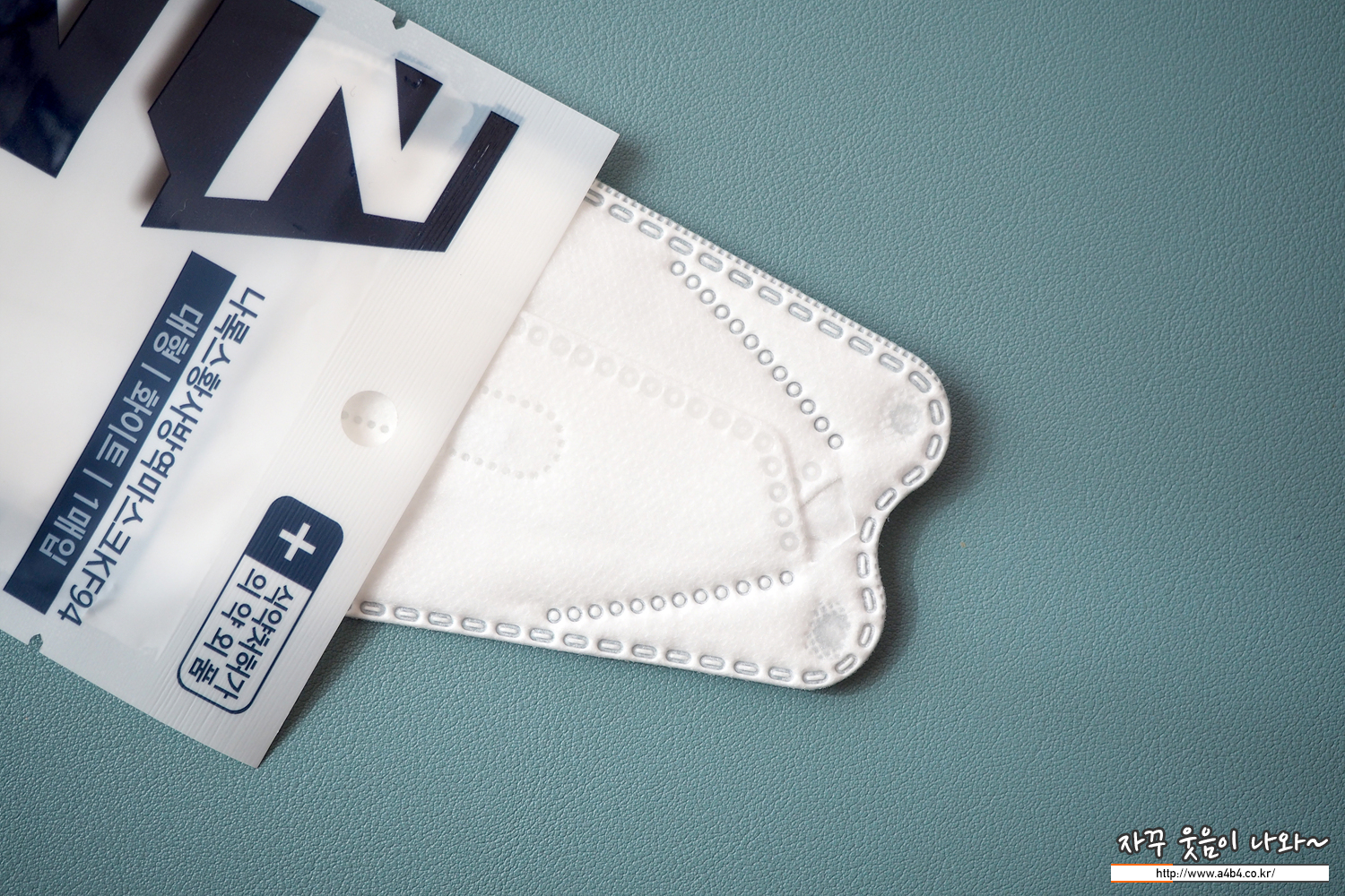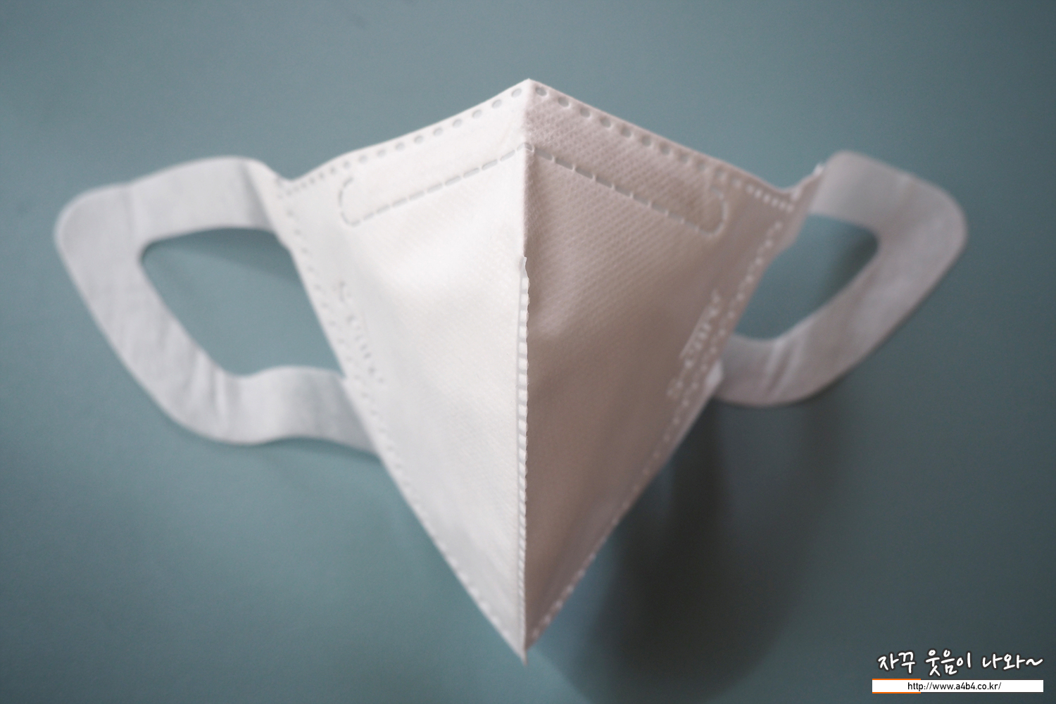 아이바나리 마스크 KF94 외피는 약한 도트처리된 매끈한 감촉의 부직포가 사용되었습니다. 조금 얇은 스타일의 제품으로 얇지만 탄탄한 착용감과 착용핏을 보입니다.