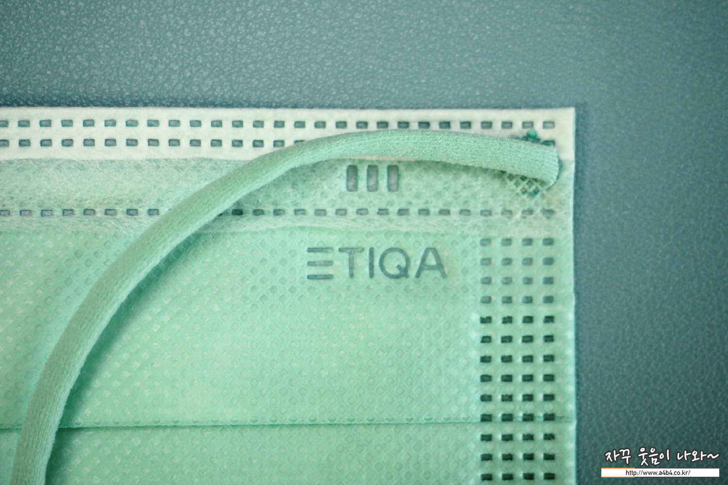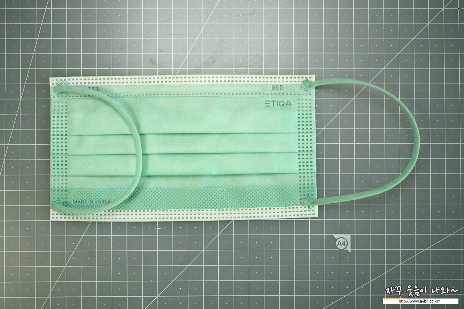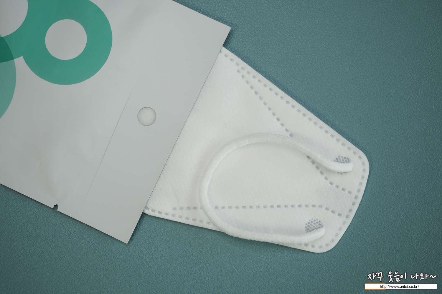 원형의 귀걸이끈이 마스크 전면에 접착되어 있으며, 귀걸이끈 탄성은 조금 약해 잘 늘어나는 타입입니다.