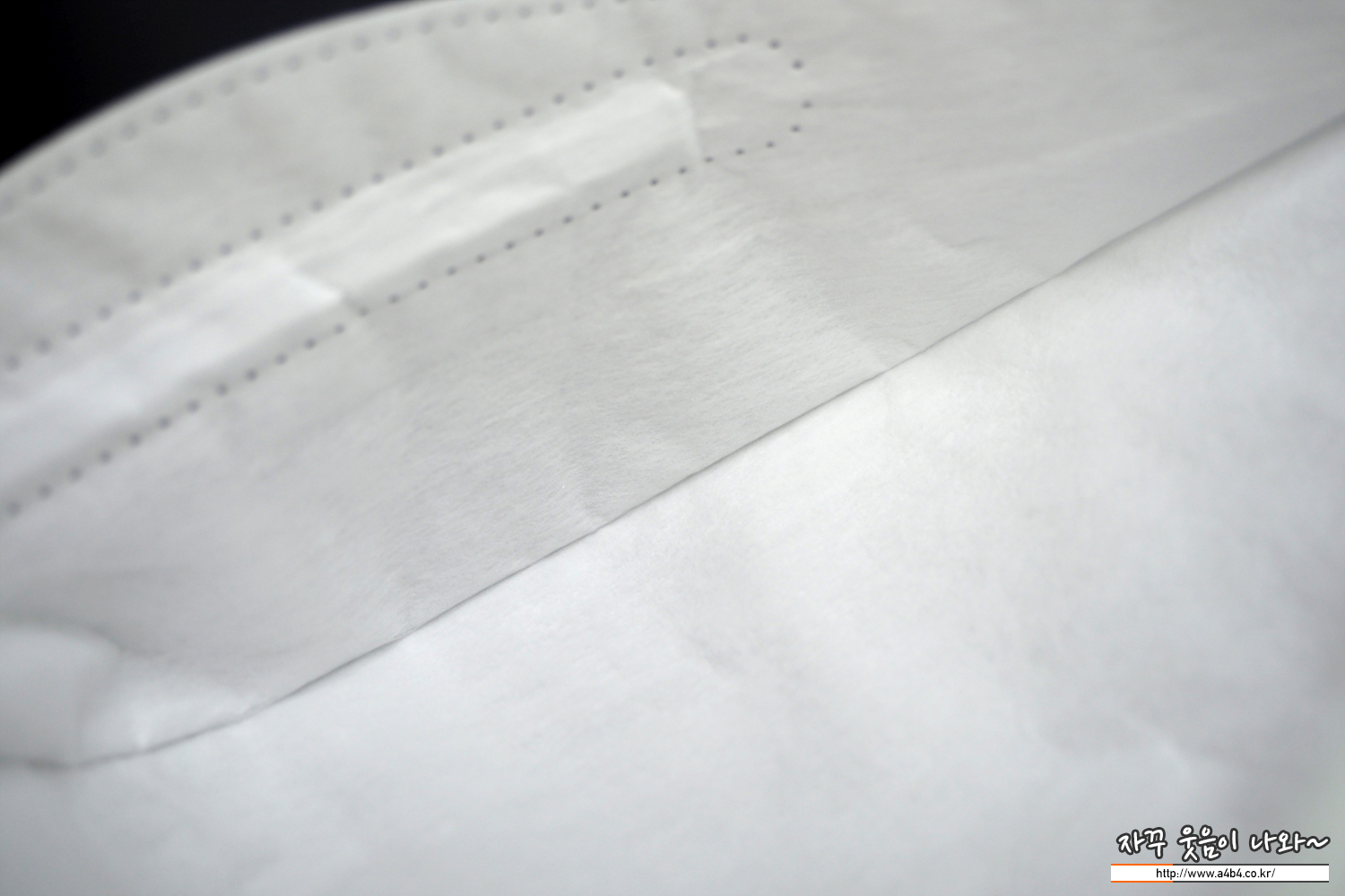 KF94 에이스원 마스크 대형 내피는 드라이하면서 조금 매끄러운 감촉의 부직포가 사용되었습니다. 하루 종일 사용해도 내피에 보푸라기는 생기지 않으며, 볼이나 코 부분이 간지럽거나 가려운 문제점은 없습니다.