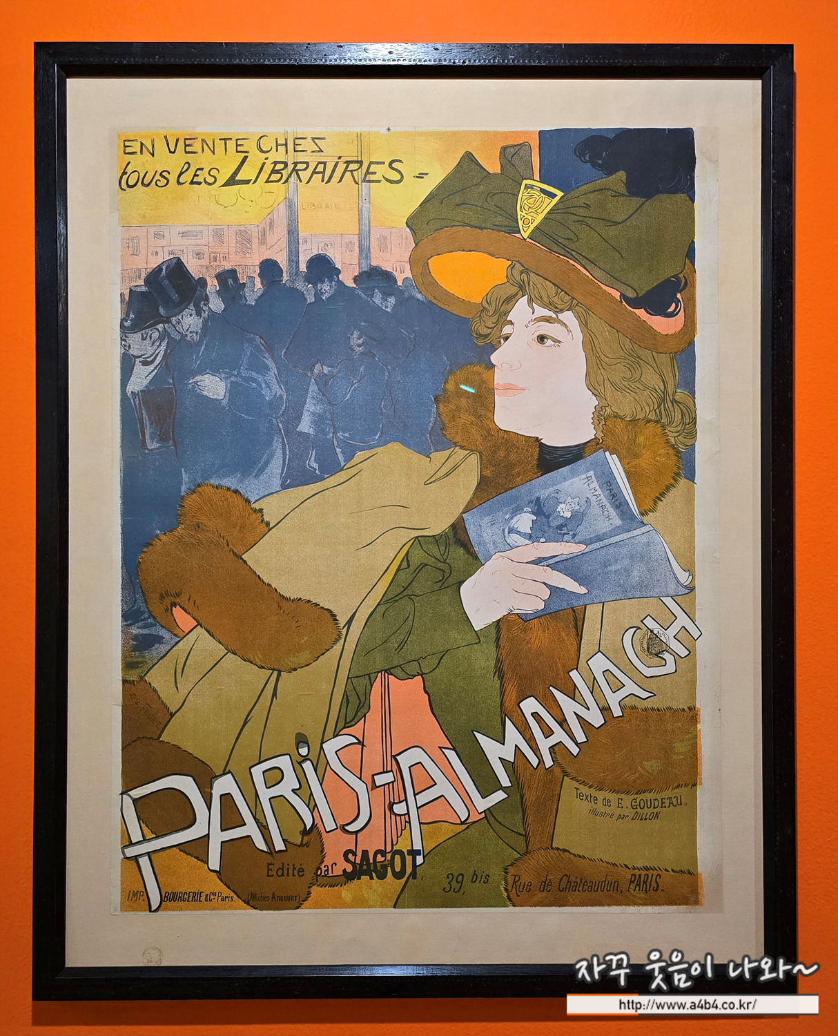 귀스타브 마리는 프랑스의 삽화가이자 포스터 디자이너로, 유머러 스한 표현과 감각적인 구성을 보여준 예술가로 알려져 있습니다. 이 작품은 미술품 상인이었던 에드몽 사고가 자신의 인쇄소 와 당해 출간한 책을 홍보하기 위해 의뢰한 포스터입니다.