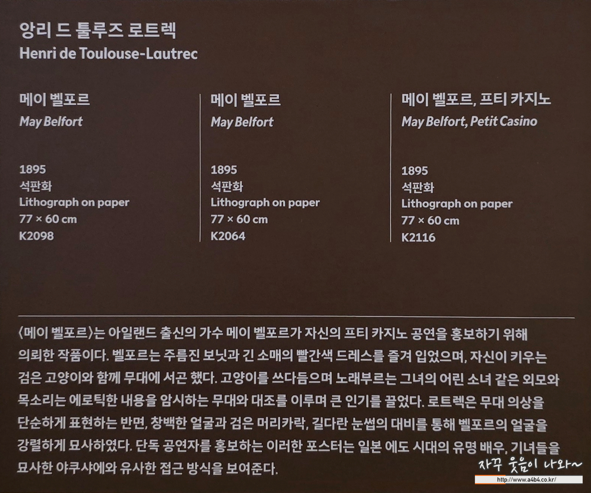 지금까지 마아이트뮤지엄에서 열리고 있는 툴르즈 로트렉 전시회 관람후기 였습니다.
