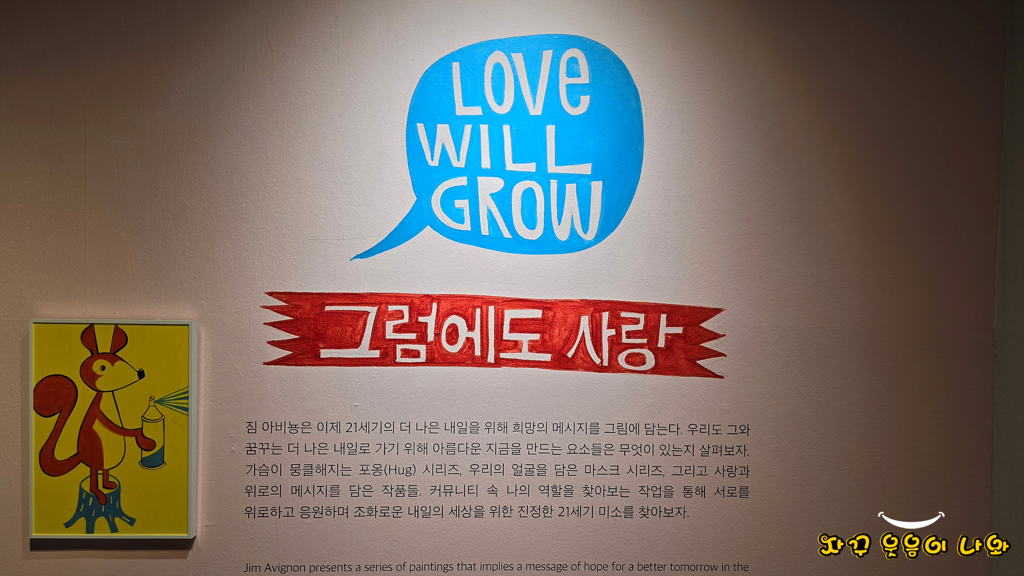 베를린 장벽에 행복을 그린 예술가 짐 아비뇽 : 21세기 스마일 展은 강동아트센터 아트랑 2층에서 이어집니다.