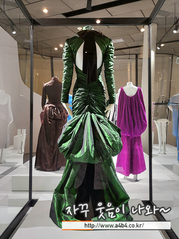RSVP: 위대한 유산으로의 초대 ‘Touch of Time(시간을 뛰어넘다)’에서는 1880년대에 엉덩이 부분을 과장한 버슬(Bustle) 스타일이 1990년대 비비안 웨스트우드와 꼼데가르송의 디자인에 어떤 영향을 미쳤는지 비교해볼 수가 있습니다. 동시대 가장 창의적이었던 의상이 과거의 디자인과 맞닿은 지점을 조명하는 섹션입니다.